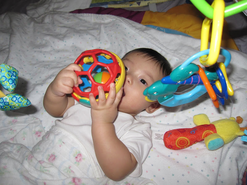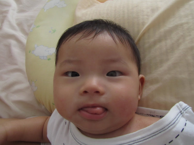 - 阿凱才五個多月大就需要開始管教了, 今天咬了我(的ㄋㄟㄋㄟ)十幾次, 又一直用手抓另一個ㄋㄟㄋㄟ,把他兩個鼻孔塞住,讓他一定得鬆嘴,再跟他說不行咬, 可是阿凱以為我在跟他玩, 愈咬愈開心,真令人昏倒。後來就用書上說的放地板(其實是床)不理一分鐘, 用了兩次他也不理我了,看來是奏效了?後來再餵他他會試探性地假裝要咬,觀察我的反應,我就只是讓他鬆嘴跟他說不行,好像也就乖乖的了。小朋友真精呀!